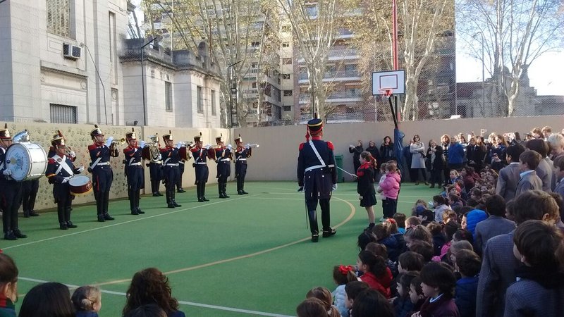 A continuación, los alumnos de los niveles Inicial y Primario disfrutaron de un importante desfile realizado por la Fanfarria Militar “Alto Perú” del Regimiento de Granaderos a Caballo.